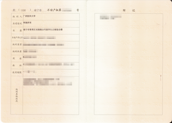 为深入贯彻落实国家关于行政事业性国有资产高质量发展的决策部署,进一步提升国有资产管理规范化、精细化水平,国资处紧紧围绕资产管理职责,历经一年多的持续努力,于2026年1月5日成功取得留学生公寓综合楼不动产权证书。此项工作不仅标志着学校在化解历史遗留资产权属问题上取得重要突破,也是我校以实际行动响应国家加强国有资产监管、推动资产管理体制改革的具体体现。